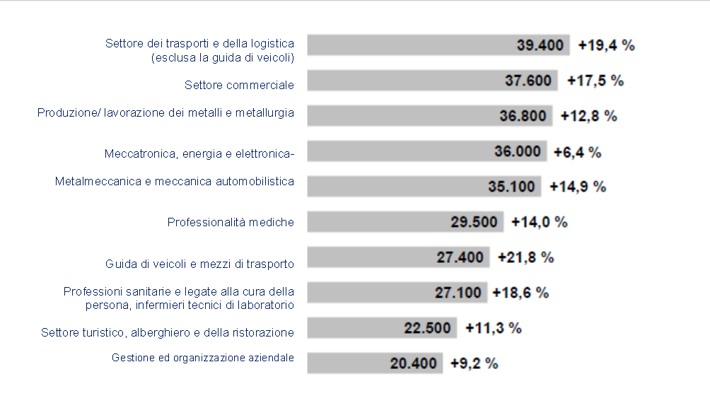 Nella sfera della gestione ed organizzazione aziendale sono 20.400 i posti di lavoro ancora disponibili, significando una crescita del 9,2 % in questo ambito.